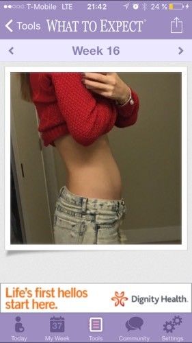 У меня в одежде даже не видно его, срок тоже 16 недель, ещё и вес сбросила, тоже сначала переживала пока не почувствовала как он там шевелится, врач сказал что все нормально, у всех по разному бывает