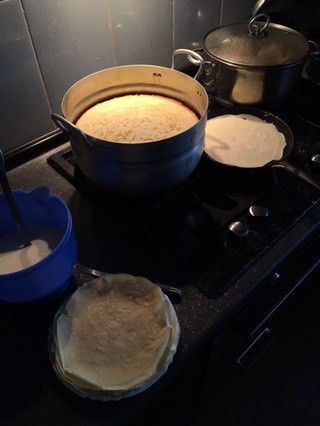 Для торта Нужно 12 яиц желток и белок отделяем друг от друга, после белок взбиваем до пены чтобы с посуды в которой взбиваете не выливалась, потом желток отдельно взбиваете добавляете туда один стакан сахара, затем в белок так же добавляете один стакан сахара ? после Берем ложку столовую и постепенно белок добавляем в желток и мешаем ? затем добавляем 2 стакана муки и мешаем ? все тесто готово ? у меня вот остались фото как я делала, я делаю в алюминиевой кастрюле 0,5 смазываю кастрюлю маслом и ставлю вниз бумагу можно специальную для выписки можно обычную не тоже смазываю и выливаю тесто в кастрюлю ?крышка должна быть плотно закрыта чтобы воздух не проходил я вот ниже на фото снизу ставлю полотенце чтобы хорошо закрыть все дырки ) ставим на маленький огонь и ждём обычно готовится 1-1.5 часа за этим нужно уже следить ) я мажу кастрюлю тестом так понятно становится приготовилось или нет ) если уже те места где помазала покраснели хорошо я открываю крышку и проверяю зубочисткой если сухое то готово достаём ?? крем я делаю масло + сгущеное молоко ??все написала своими словами как смогла ?вот пару фото ???
