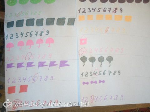 Раньше цифры с сыном специально не изучала, но считать до 5 он и сам научился, а вот с графическим соотношением была проблема. Ни в какую не мог запомнить, какая цифра сколько обозначает. Вот и решили заняться этим вплотную. Пообводили, пораскрашивали цифры, объясняла, какая цифра сколько означает на пальчиках