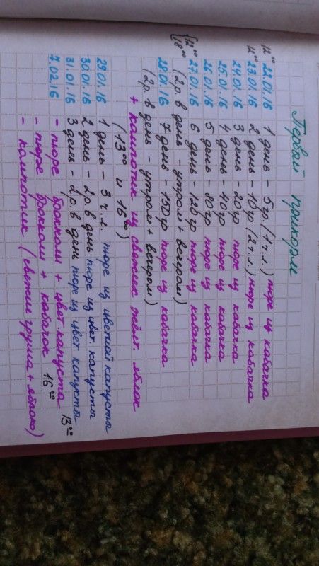Вводила кабачок, брокколи, цв.капусту самое первое, ну вот мои записи сфотала)