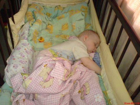 Спала с 2х месяцев с 22 до 6-8 без пробуждения на еду!!! Сейчас, недели 2 уже стала просыпаться 1-2 раза на покушать:( не знаю что повлияло, может погода, может скачок в росте какой-то… А добились мы нормального ночного сна путём продолжительных дневных прогулок на свежем воздухе, и активного купания в большой ванне.