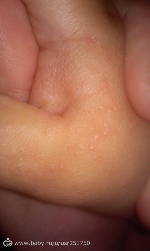 Меня эта сыпь сведет с ума! Если кому интересно, в предыдущей записи я писала про нашу сыпь. В итоге мы сдали кровь и копрограмму — все идеально. Я бросила все диеты, все лекарства и просто мазала увлажняющим кремом бюбхен… и все прошло! Пару недель все тихо… а вчера ночью мелкий стал вдруг ворочаться, чесать ручку. С утра я ничего особенного не заметила, все как обычно. Этой ночью опять он ворочался и чесал ручку. С утра на правой ручке, преимущественно на большом пальчике и на ладошке выступила красная сыпь. ( на фото уже бледнее стала).На левой ручке пара прыщиков на тех же местах. Он ее особо не чешет. Намазала фенистилом, дала зиртек. И сижу в прострации. Единственное мы пару дней назад были в больнице и он естественно все трогал. Но после больницы я сразу антибактериальными салфетками ему руки протерла и дома руки вымыли.