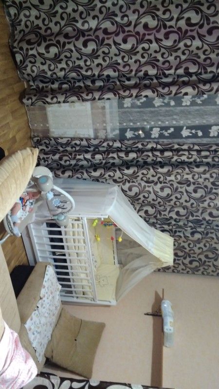 У нас кроватка с люлькой которая, с балдахином и отстегивающимися бортиками. Отстегнула все в кроватке, постирала.