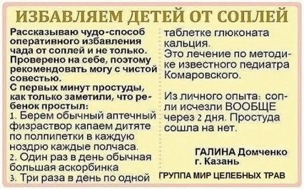 Olushechka, И не говорите, все такими грамотными хотят показаться. Препараты сильные рекомендуют, даже в инструкцию не заглянув. Ну или бред всякий, типа грудное молоко в нос закапать