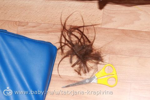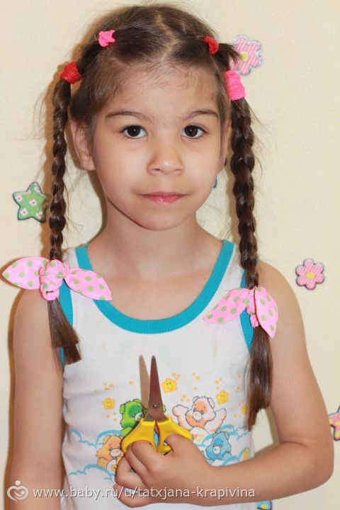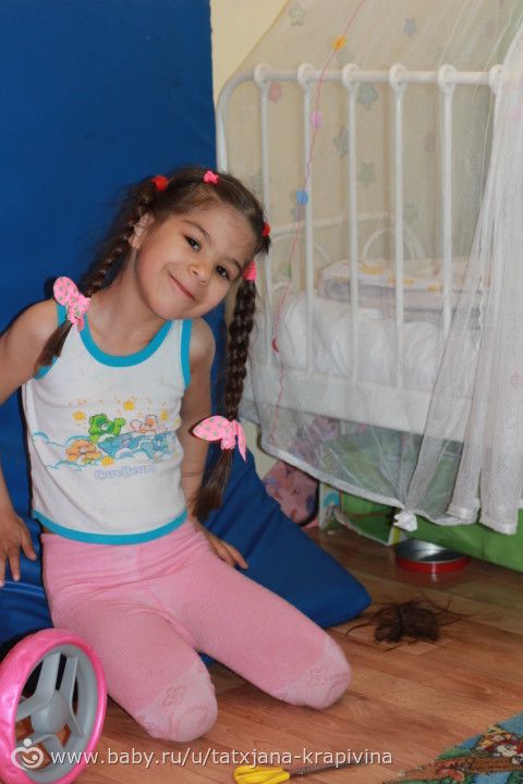 она и челку отрезала (ту, которая не была собрана резиночками). Объяснила это тем, что хочет быть похожей на меня. Я же без челки.