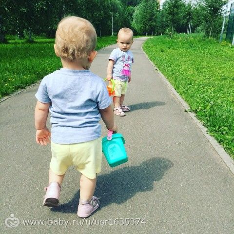 Научились бегать, любят сами ходить везде все рассматривать. Цветочки, листочки, веточки и т.д. Проходят сами около 1 км и устают, просятся сами в коляску.