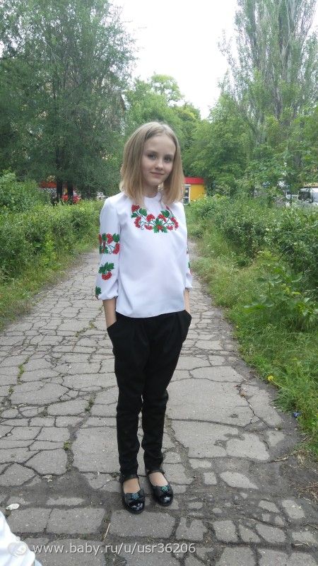 Немного нас покажу. Соня в вышиванке бисером)) Она захотела. чтобы рукава были присборены. Ну и ладно) А еще наше выпускное платье