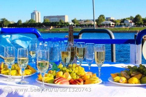 Небольшой фуршет вначале на палубе, потом спустились в низ.