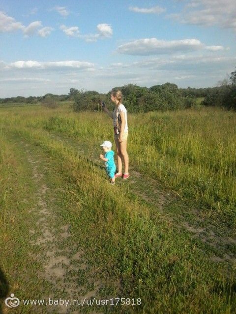 Вчера мы вечером (я совсем лбессиленая) убежали с нашей строительной площадки. Никиту не смогла уложить: спать хочет, а не ложиться. Я взбешённая тяжёлым днём его в охапку, в коляску и поехали. Он всю дорогу конючил. Но приехали на луг — и всё хорошо стало, когда выпустили на волю.