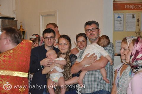 Вчера покрестила своего сыночка и сама стала крестной мамой для маленькой Стефании.В церкви крестили 5х малышей до года, мы вели себя спокойно, покричали только в купели.Волосики не состригли, посмотрев на лысика, батюшка сказал не надо. Сегодня с утра во время службы сидел на ручках слушал, а перед причастием уснул.Влили спящему Матвешке кагор и святой воды, проснулся только дома)))