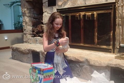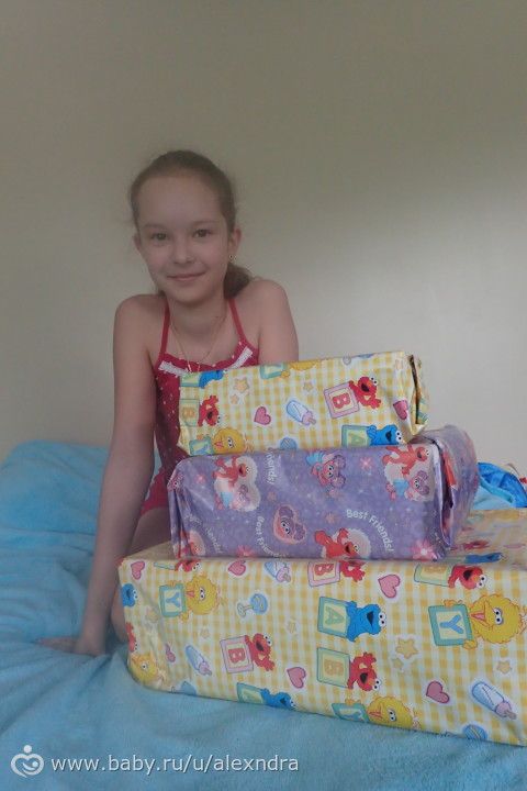 И момент вручения подарков, Анита подарила Ангелине много одежды, мы кстати тоже, Ангелина будет щеголять в новых нарядах все лето)