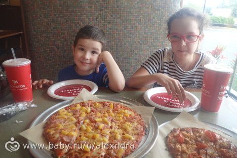 И уже потом, проголодавшись, поехали есть любимую пиццу именинницы — с ананасами и ветчиной)