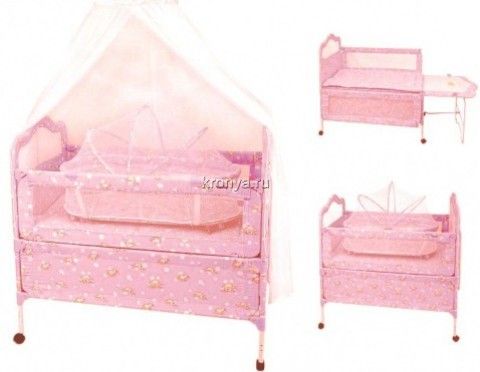У меня трое детей и всем покупали только такие кровати)))бок откидывается и получается пелееальный столик есть стена колыбель с москитов сеткой… все легко стирается и снимается… можно использовать как манеж… высота дна регулируется… легкая… легко передвигается… и разбирается одни плюсы))))