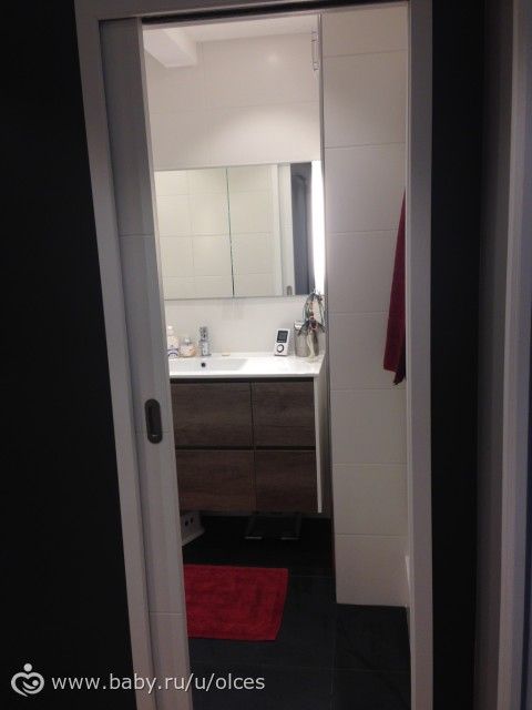 5. Задвижные двери. Чтобы сэкономить пространство, мы предусмотрели системы задвижных дверей. То есть они прячутся в стены. Ни влага, ни тепло не уходит из комнаты. Двери закрываются очень плотно.
