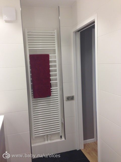 Старую батарею заменили на новую, «умную». Зимой она использует общее отопление, а летом можно переключить на электричество. Также мы запрограммировали ее на определенную температуру в определенное время. То есть утром заходишь в ванную, а там тепло и уютно.
