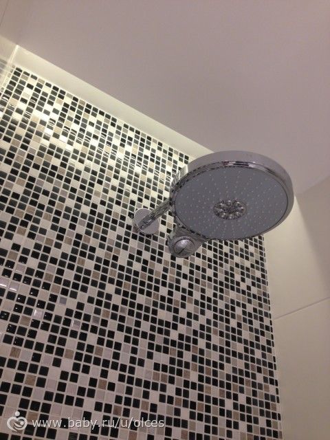 А это чудная голова от душа фирмы Grohe, она имеет разные потоки воды, в том числе массаж головы. Только ради нее я готова утром встать в 6:30 :) А сын, когда впервые мылись тут, голову мыл 5 раз, хотя обычно не любит это дело. Но тут " дождик" с неба.