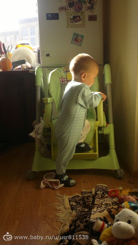 5июня нам исполнилось 1г2м. Мои ожидания по поводу самостоятельной ходьбы не оправдались:) но стал ходить за ручки, за обе:) я не против — спина в порядке, да и ходим мы на площадке, а дома совсем немного. Топает уверенно, может стоять без опоры, если задумается. Буквально на днях я опустила стульчик максимально вниз и он стал сам залазить и спускаться: