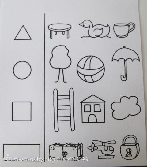 1. Найти, где спряталась фигура в заданных рисунках.У нас здесь небольшая заминка-треугольник трудно дается.
