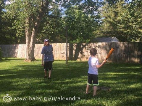 У Ангелины тоже сильный удар в игре в бейсбол, потом сфоткаю ее игру).