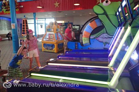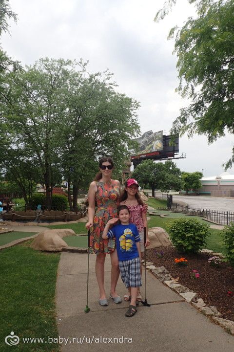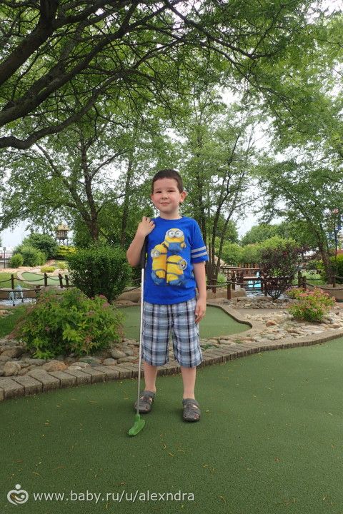 Играли в мини-гольф, даже у Миши очень хорошо для его возраста получается. Я очень люблю эту игру, вспоминаю физкультуру в школе — эти изматывающие кроссы при моем то астматическом бронхите, я всю жизнь, до приезда в Штаты считала себя неуклюжей и неспортивной девушкой, а оказывается не те виды спорта выбирала. Как оказалось я очень неплохо играю в мини-гольф, муж удивляется и гордится, в бейсбол, в боулинг и баскетбол — я то думала что по мячу вообще попасть не смогу во всех этих видах. И сестра и муж меня долго уговаривали хотя бы попробовать, я отнекивалась боясь позора)))). А как оказалось — даже без подготовки у меня вполне приличный уровень и сейчас я с удовольствием играю во все эти виды спорта. Вот осталось теннис попробовать).