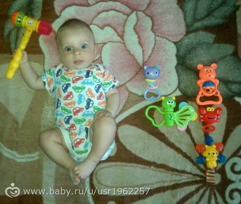 Спасибо )) да буквально месяца в 3 чуть позже… положу его на животик выложу перед ним все его богатство, а он все равно тянется к одной и той же всегда