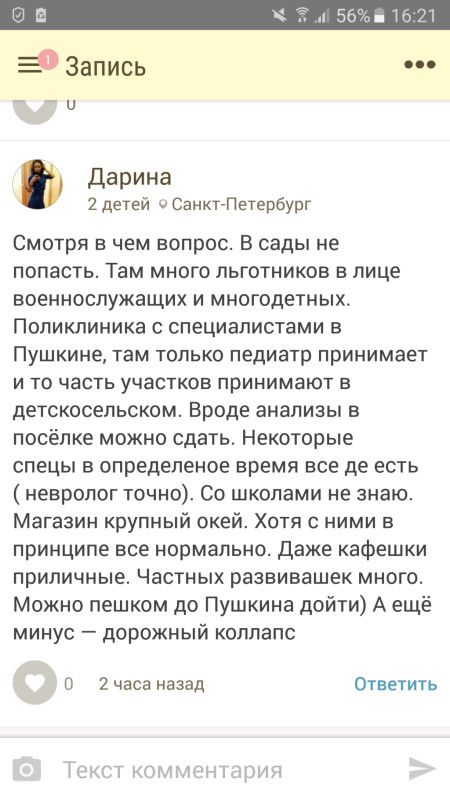 Из минусов это сады, но с учетом, что жду второго решила пока и не отдавать, и то, что муж в 6 утра выезжает и в 9 вечера приезжает, но есть вероятность того что служить когда нибудь будет в пушкине.