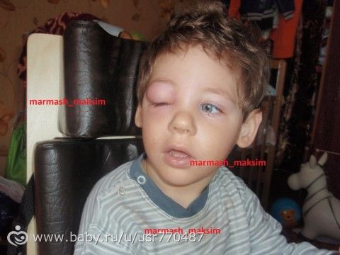 Блин… ты мой хороший, сильно же опух глазик. Недавно дочу под глазик мошка укусила, тоже все распухло, мазала и фенистилом и содой, через 5 дней прошло, пятнышко осталось теперь, думаю сойдет. Ни у вас одних полоса пошла, у Ромки тоже… ходили гулять как обычно, пришли, вечером температура поднялась, теперь болеем, весь вялый(
