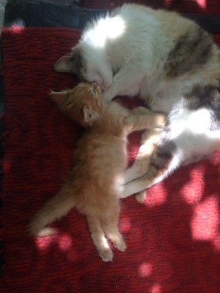 Она ложиться к животику и урчит в него и малыш перестает меня пинать больно))) мне кажется они подружаться))))
