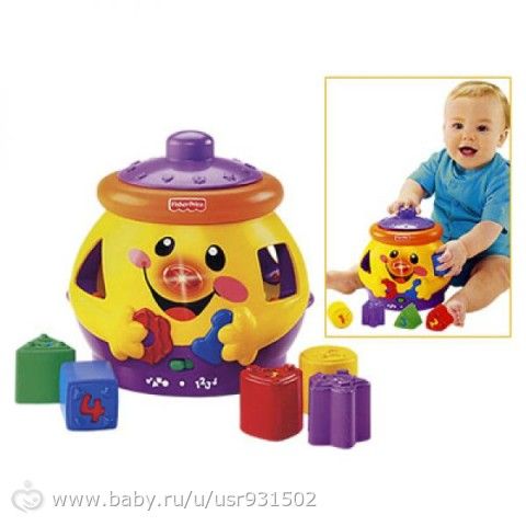 просто из всех игрух на годик эта оказалась самой замечательной и желанной у ребенка. )))) там еще песенки блин, приставучие, потом папа-мама их напевали себе под нос. Но надо именно фишер-прайс, другие, подешевле, но у них качество уже хромает сильно. А наш горшок где только не летал.