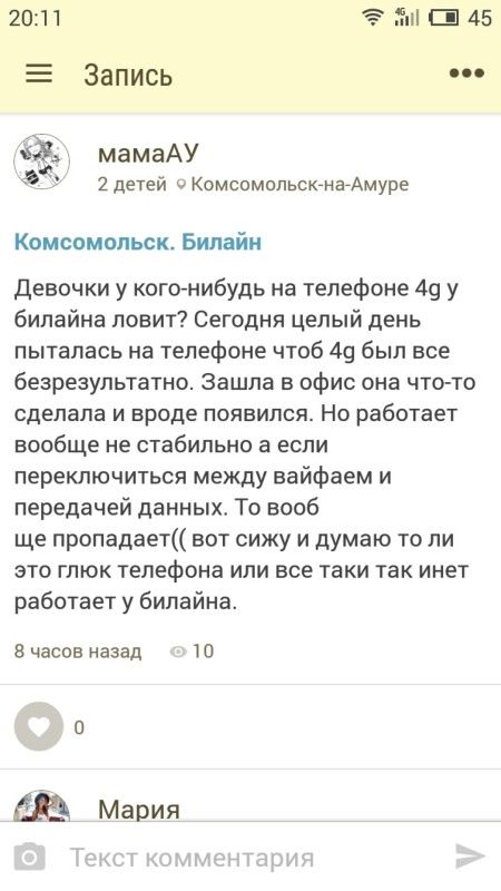 Девочки у кого-нибудь на телефоне 4g у билайна ловит? Сегодня целый день пыталась на телефоне чтоб 4g был все безрезультатно. Зашла в офис она что-то сделала и вроде появился. Но работает вообще не стабильно а если переключиться между вайфаем и передачей данных. То вооб