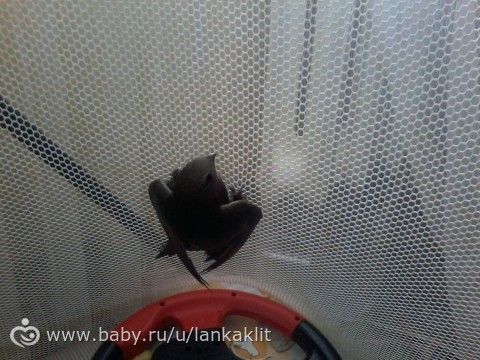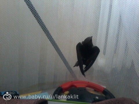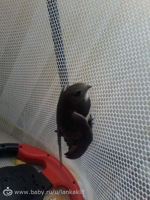 Катарсис я испытала, когда зашла в шлёпо-брякную комнату. В детском манеже, намертво вцепившись когтями в сетку, висел насмерть перепуганный клювокрыл. Или клювокрылиха? (Кстати, меня с прошлого года мучает вопрос, — как назвать мужа ласточки? Ласт?)