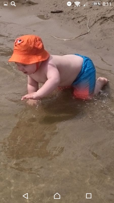 Савелий 2,6 тоже не первый раз на море, но сегодня сидя у меня на руках мочил даже плечи, а как понравилось когда волной то накрывает))