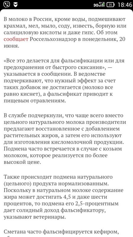 Я не имею отношения к производству заводскому. Я имею отношение к фермерству. Про мочу в молоке говорю не на заводе, а как недобросовестные фермеры приторговывают, увеличивая объем а следовательно и выручку. Не могу ничего сказать про ваш регион, может действительно все у вас еще по честному и по ГОСТу. Но например в Ярославле проходили проверки молочной продукции и ВСЕ местные молокозаводы уличили в фальсификации продукции. Огромные штрафы и суды якобы собираются над ними учинить, но по факту все до сих пор работают.