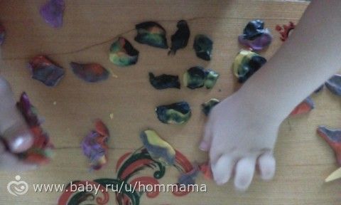 В плане пластилина он обычно резал, катал колбаски и просил меня что-либо слепить. Последнее время мы занимается пластилиновыми расскрасками. И вот они закончились, пока из деревни не получалось выбраться так, чтобы что-то купить. И вот он на начал сам отрывать пластилин и размазывать его, правда, по столика, но для нас это уже прогресс)