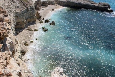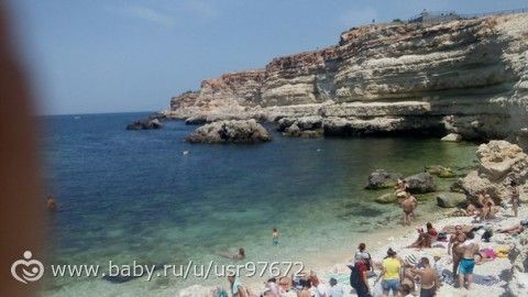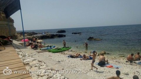 я открыла для себя обалденное место для отдыха! Стыдно признаться, я уже 10 лет живу в Севастополе и вот только на днях была в Голубой бухте! КРАСОТА!!! Мы с декабря живем в Казачке (Севастопольцы поймут где-то), и вот я всё думала, куда с малышом на море ходить во время отпуска… первое что приходило в голову, наша бухта… но там так ГРЯЗНО! и тут я решила пройтись до Голубой, а оказалось, что это совсем не далеко от нашего дома, с малышом медленным шагом до пляжа мы доходим за 20-30 минут!!! там оборудовано для деток ест огромная песочница, батут, лабиринт, горка в море… но сам заход в море мне не очень нравится… камни и водоросли! а вот если проти немного за скалу… там чистейшая вода, хороший заход… правда маленький пляж! Но там очень круто!!! Фото прилагается! Вид сверху...