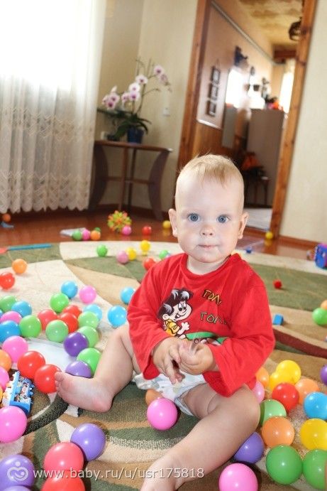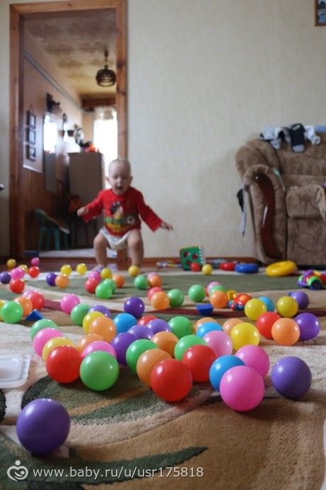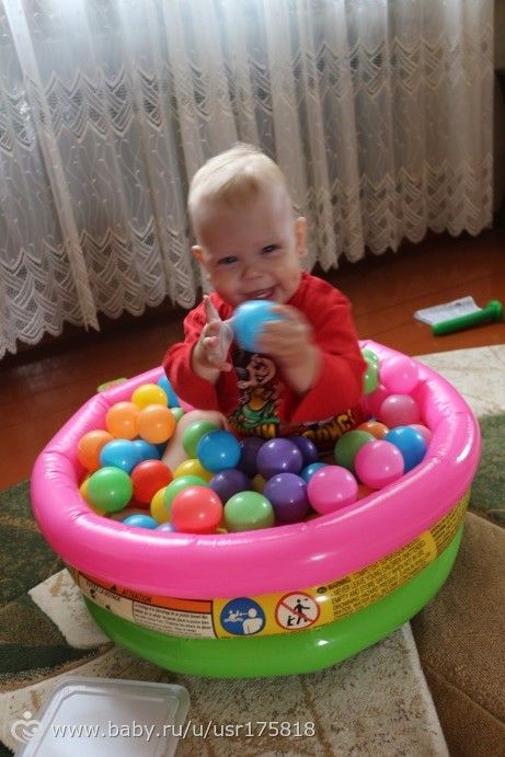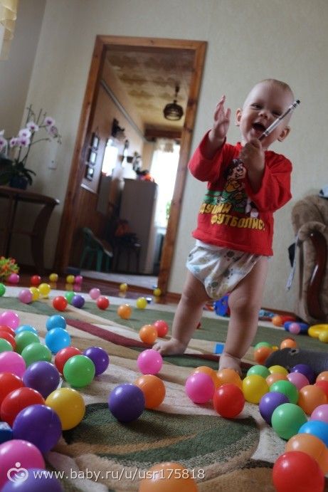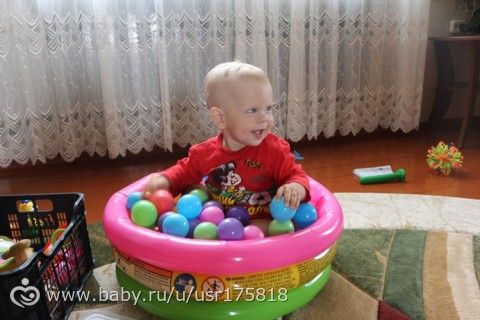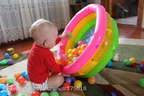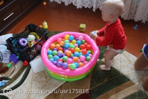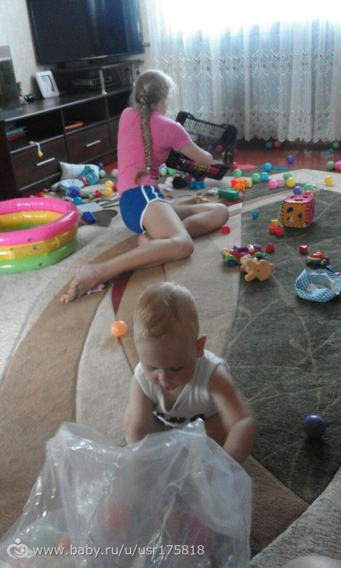 Потом всё убирали. Никита старательно закидывал мячики в пакет.