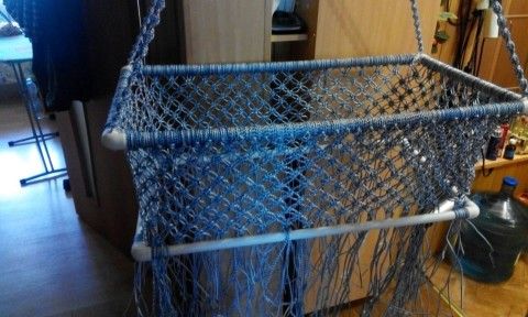 На дворе лето… собрались мы с сыночком на дачу, и тут у меня появился вопрос… где же мое чадо будет спать??? Долго думала, перебирала кучу вариантов и придумала… так как сына еще маленький, места на даче не много думаю ему понравиться спать в люльке… и решила сплести ее сама))) девочки не ругайте сильно, я правда старалась