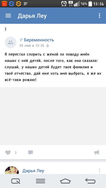 Ха! У меня ситуация наоборот. Когда не знали пол малыша мужа уговаривала если дочка Ульянкой назвать, ну ооочень мне хотелось, а мужу не нравится. В итоге у нас мальчик