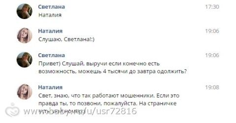 Друзья-товарищи! Кто еще не знает! Мошенники не дремлют, пытаясь нажиться через социальные сети. Взламывают страничку и рассылают сообщения с просьбой одолжить денег. Если начать переписываться — отвечают адекватно, могут придумать причину, по которой им нужны деньги, рассказывают как «у них дела», в итоге присылают номер карты, на который по старой дружбе просят перевести деньги. Мы сталкиваемся с этим уже не первый раз. Давайте распространим информацию.Предупрежден — значит вооружен! НИКОГДА не переводите деньги без предварительного телефонного звонка. От какого бы близкого и родного человека ни пришло это сообщение. Всегда просите перезвонить или звоните сами. На этом этапе мошенники «сливаются».