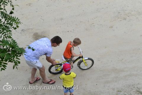 Уже носится, как угорелый, не думала, что он такой упертый будет и падал и цепь ронял, но научился и сейчас с гордостью всем показывает, как он может на «большом» велике гонять..