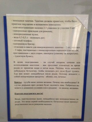 С сынулей когда записывалась в роддом, там список висел вещей какие нужно...