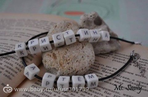 Девочки, очень-очень нужно, подскажите пожалуйста где купить у нас в городе или может где заказать можно в интернет-магазинах буквы/цифры для браслетов, мне срочно надо ребенку браслет сделать на ручку, хочу ее имя и мой номер телефона собрать в браслетик, она у нас убегает, в поликлинике за секунду сбежала пока я в регистратуре стояла талон просила, погнала на улицу за пацанами, я в шоке, мне с ней страшно в общественные места ходить, она постоянно пытается смыться, на 9 мая писала на пластыре мой номер и клеила внутри пиджачка, думала сбежит так хоть люди увидят и позвонят, вот и сейчас надо что-то придумать...