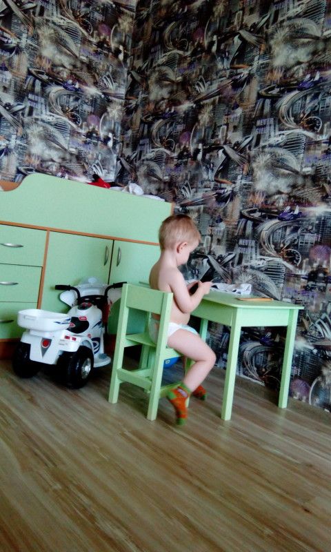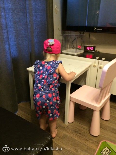 Икея у нас) высота стульчика от пола 30см кажется, сидят за ним и сын и дочка)