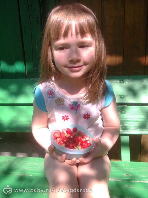 ну а это дачные новости — с утречка собрали первый урожай землянички и клубнички, доча помогала во всю: