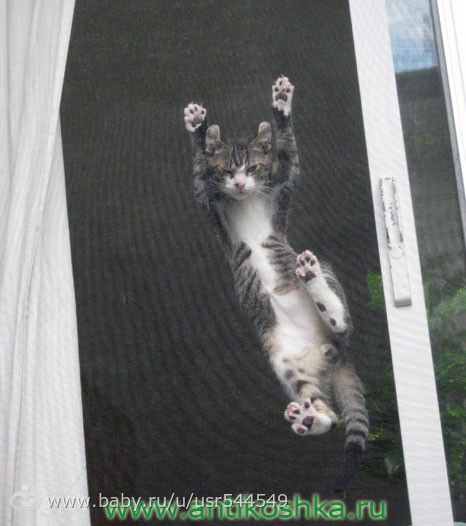Будьте ответственны! Если ваша кошка «ни за что, никогда..» — это не значит, что она не попробует это сделать сегодня вечером или завтра. Обычные москитные сетки крайне ненадежны, они легко раздираются когтями и имеют очень ненадежные крепления.