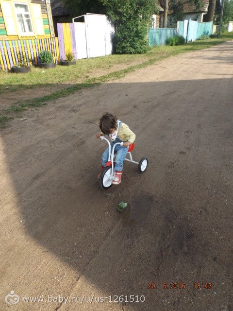 С прошлой недели начали ходить в садик на час, на прогулку. Очень нравиться, с детками пока не общается — присматривается, но и играет с ними немного. Я сижу все это время пока что рядом с ней. С горшком так и не дружим, но хоть уже начала сама снимать трусики когда пописала и кричать пук когда по большому. Из нового только речь — уже говорит во всю и в тему. К примеру: я мою посуду и задумалась, слышу малая что то говорит и я ей говорю что не слышу ее. Она подходит ко мне и спрашивает — теперь услышишь? киваю головой — я не могу мутики ключить, поги (помоги). помогаю и в ответ на это — спасибо. Вот так мы уже болтаем. Еще купили ей велик трехколесный (еле нашли наш размерчик т.к с нашими 86см до педалей не достаем в большинства моделей) — всего два дня и начала гонять и в зад и в перед.