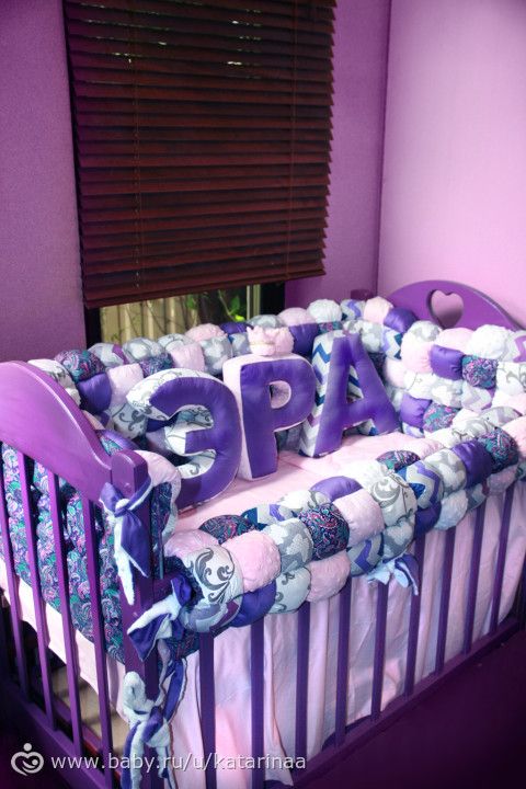 ну просунет через борты, а дальше что? Решетка. И чего? Как просунул так и высунет, кроме того дети не дураки, они не суют куда попало то, что им дорого))) С первым разные всякие бортики были, отдельные, а Эре купили на заказ сшитые, там 1 большой идет и один короткий отдельно на опускающуюся. Очень нравятся мне и Эрушке, она обожает их рассматривать и засыпает, ей уютно