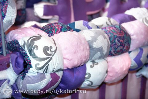 у нас один сплошной борт, мама сшила из плотной ткани для шторы в детскую.