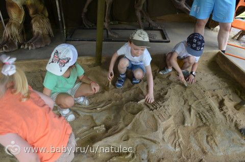 В прошлые выходные ездили гулять в парк Сокольники и там открыли выставку «Тайны мира» с динозаврами. Кому интересно. вся информация у них на сайте. Нам очень понравилось))) Динозавры двигали головами и шеями и хвостами и рычали. Все очень красиво сделано. Каждые полчаса экскурсия с экскурсоводом (входит в стоимость билета), рассказывает очень интересно. Мы сначала прошли с экскурсией, а потом просто сами еще раз прошли, повнимательнее посмотрели и пофотографировались. Там можно сфоткаться в яйце. Поучаствовать в раскопках, там типа песочницы и в ней кости динозавров (макет конечно), и выдают кисти и все сидят раскапывают, мне самой понравилось, в детстве мечтала стать палеонтологом