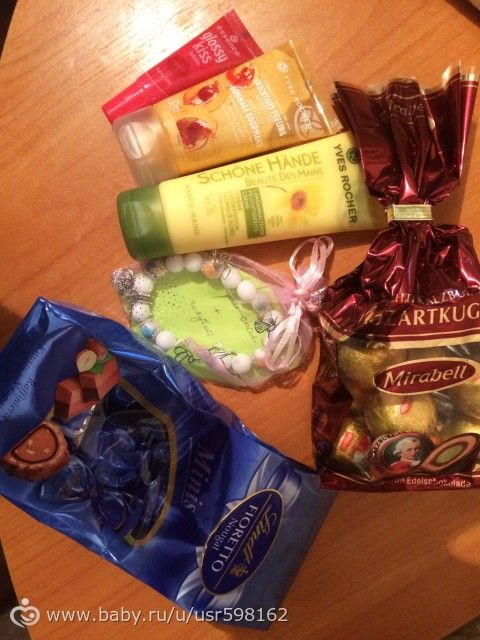 Для меня косметика, ив Роше одна из любимых кстати:), чудесный браслетик и конечно конфетки. Угощу всех)))